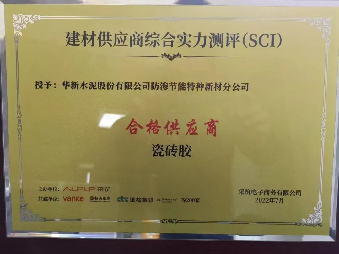 近日,由华新防渗节能特种新材分公司生产的瓷砖胶成功通过万科采筑平台合格供应商测评,成为瓷砖胶合格供应商。
