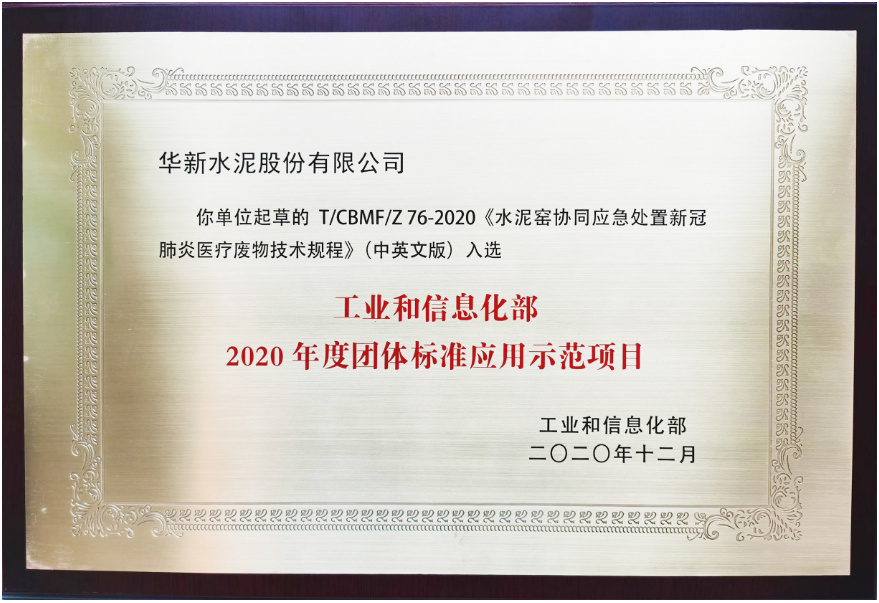 公司起草的相关规程获评工信部2020年度团体标准应用示范项目