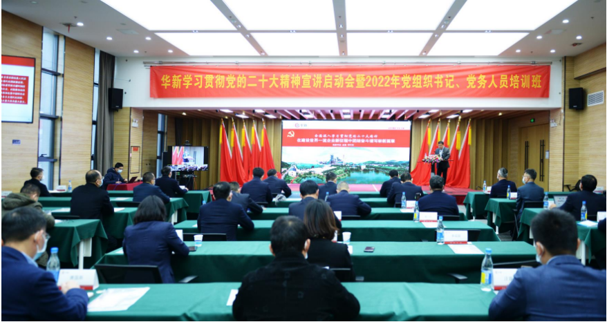 12月13日,华新党委举办学习贯彻党的二十大精神宣讲启动会暨2022年党组织书记、党务人员培训班。湖北省委宣讲团成员、省经信厅党组书记、厅长刘海军应邀作学习贯彻党的二十大精神主题宣讲报告。公司党委常委、公司高管及总部职能部门、党政部门负责人、部分直辖党委成员在华新大厦主会场参会,部分公司领导和各级党组织成员在各分会场参会,共计2700余名党员骨干参加了会议。